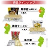 | 原材料 | 【麺】小麦粉(国内製造)、小麦蛋白、還元水飴、食塩/加工澱粉、酒精、かんすい、(一部に小麦を含む) 【スープ】しょうゆ(国内製造)、砂糖、肉エキス、食塩、焼きあごだし、動物油脂、醸造酢、植物油脂、焼きあご・あじ煮干し粉末、オニオンエキス、野菜エキス、酵母エキス、調味油脂、香辛料/調味料(アミノ酸等)、酒精、カラメル色素、酸化防止剤(ビタミンE)、増粘剤(キサンタン)、香辛料抽出物、(一部に小麦・大豆・鶏肉・豚肉を含む) |