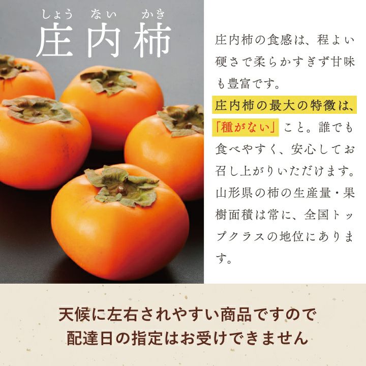 他の画像を見る 「松ヶ岡農場 庄内柿」秀 18個 3.3kg【R7年度販売】 平詰め 山形県鶴岡市産 渋抜済 産地直送10月中旬~11月下旬発送 ¥ 4,500 税込 販売を終了しました。 詳細を見る お気に入りに登録する