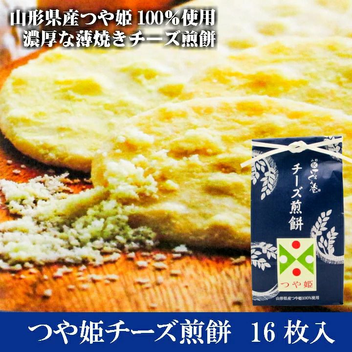 本品はこの山形県産つや姫を100%使用したうす焼きチーズ煎餅です。