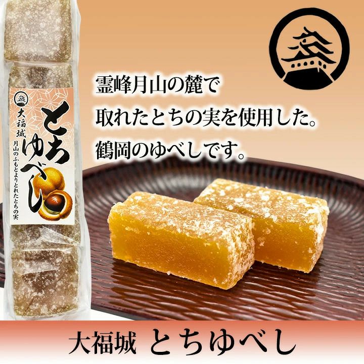 他の画像を見る 大福城「とちゆべし」5個入/和生菓子 ゆべし 柚餅子 とちの実 栃の実 おやつ お菓子 山形 庄内 鶴岡 お土産 特産品 名産品 お取り寄せ ¥ 750 税込 カートに入れる お気に入りに登録する