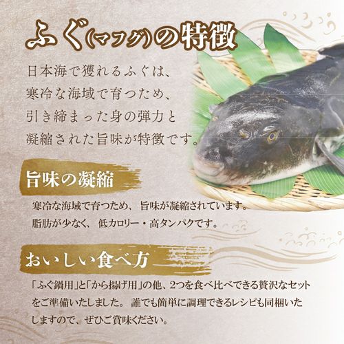 他の画像を見る 日本海で水揚げされた旬のふぐをご堪能ください! 【2025年予約販売開始!】日本海ふぐ鍋&から揚げセット4人前(鍋用200g、唐揚げ用200g)ふぐ ふぐの唐揚げ ふぐ鍋 お取り寄せ レシピ付 期間限定 ギフト ご家庭用 クール便(冷凍) ¥ 5,500 税込 販売期間 2025/10/31 10:00 〜 2026/02/09 23:59 在庫切れ 詳細を見る お気に入りに登録する